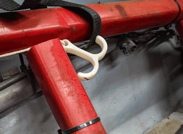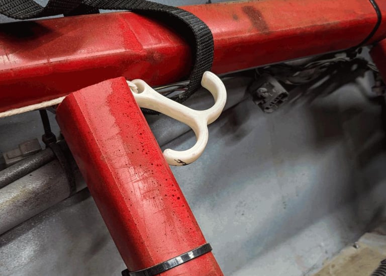 This was an early and simple project that proved very useful in application. The goal was to simplify the opening of a racecar door. Traditionally race cars use just a piece of wire as a door handle. Designing and adding this glow in the dark hook allowed the driver to easily find and open the door.