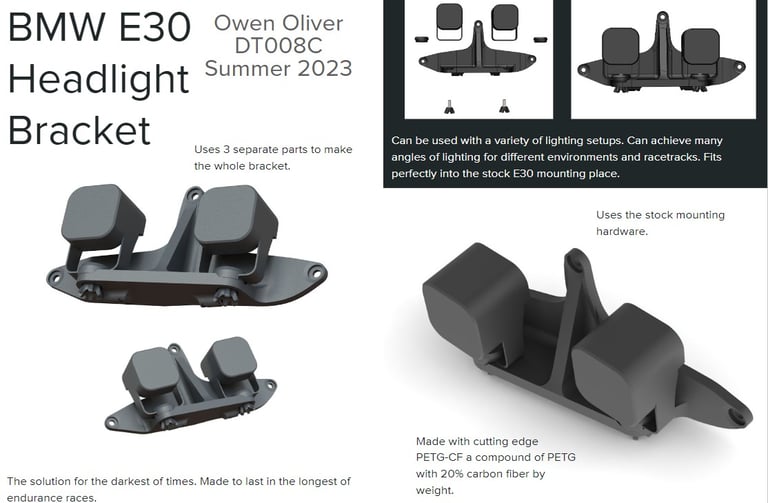 As my CAD/3D printing abilities increased I started to take on more involved projects and this is the first of many headlight brackets I designed.