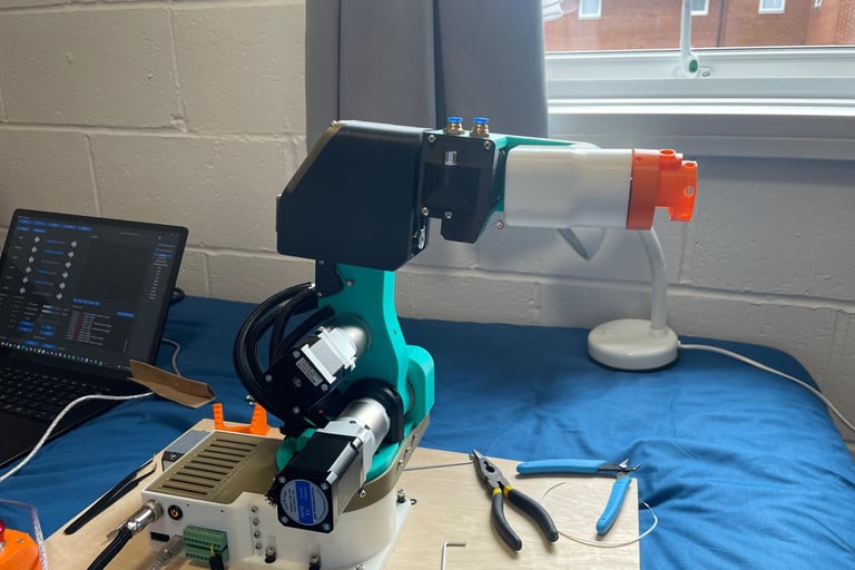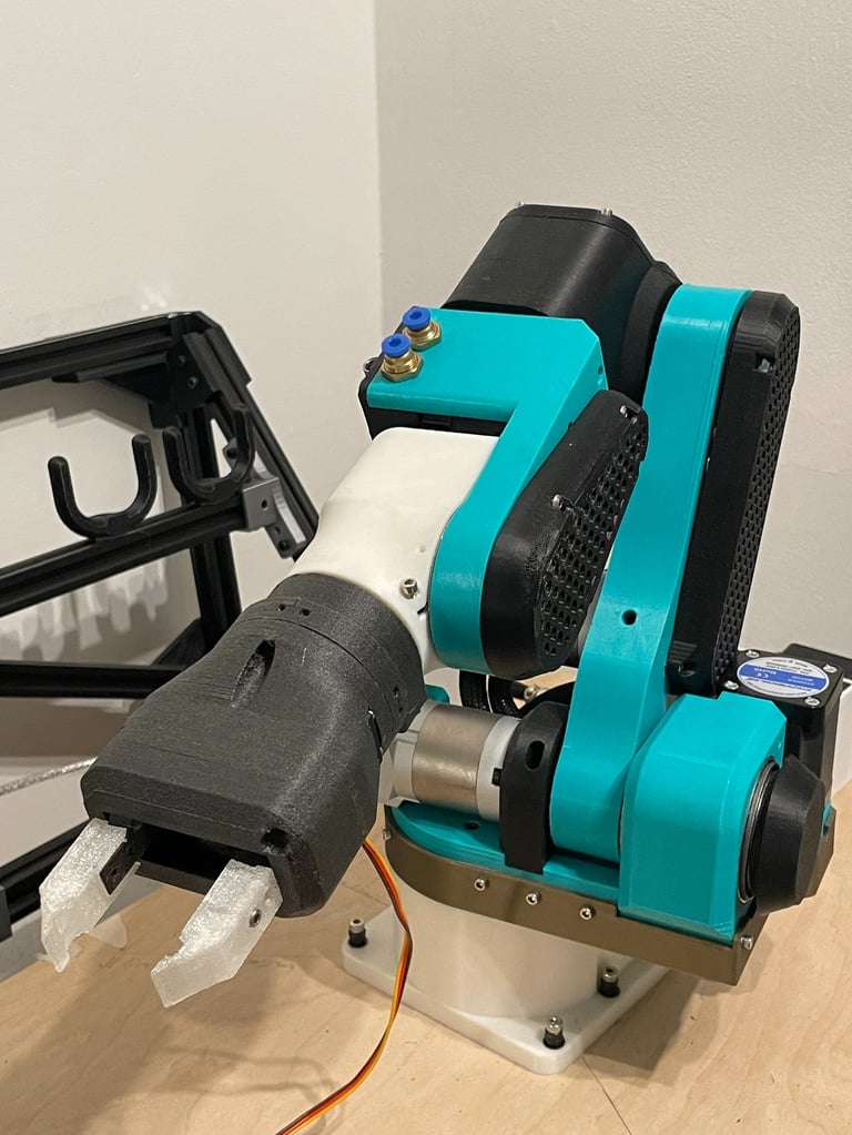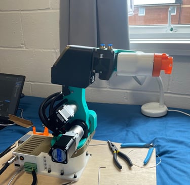 For the arm, me and my now assembled team built a Parol 6 robotic arm from scratch (from an existing Github project) and mounted the Open MV camera module on the end of it.